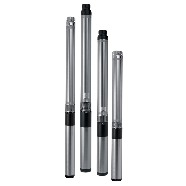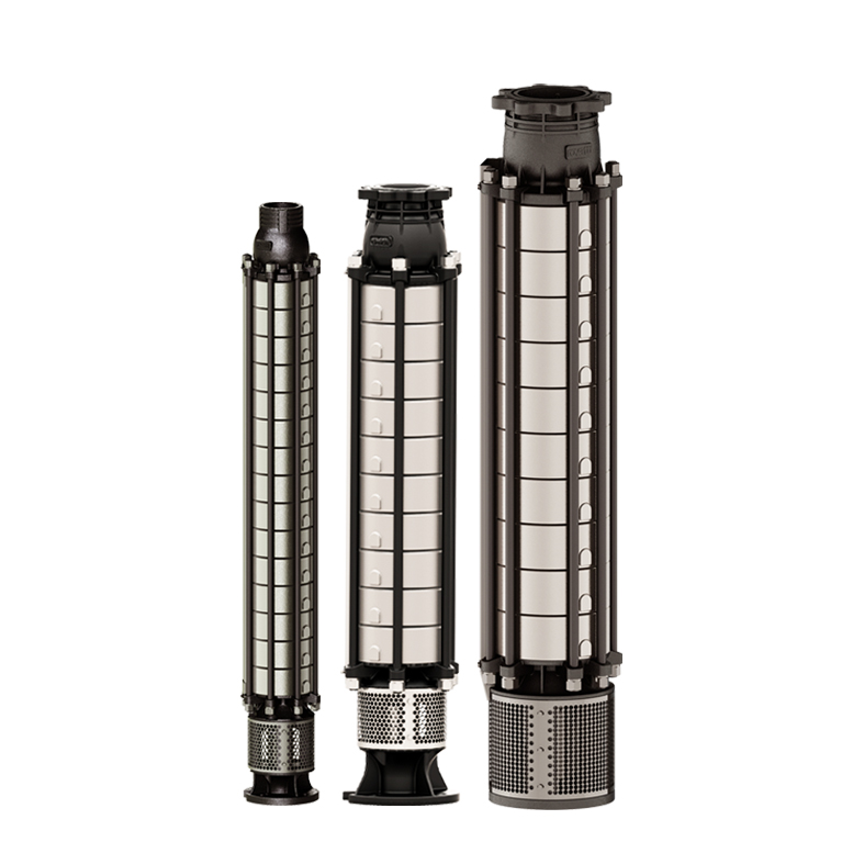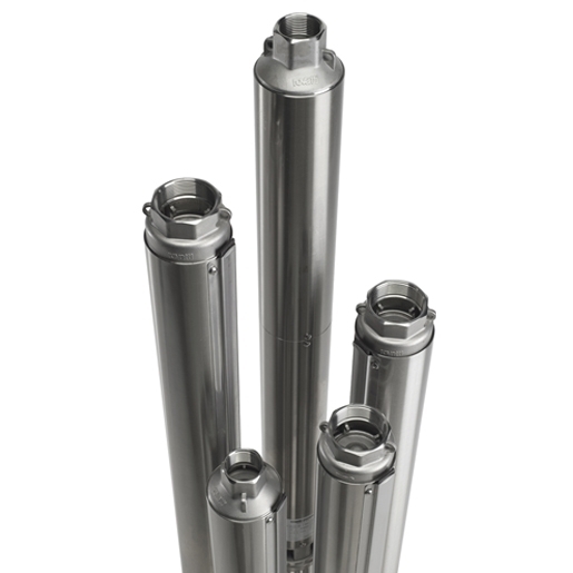 Radiální a smíšená vícestupňová elektrická čerpadla do vrtu kompletně vyrobená z lité nerezové oceli AISI 316 s integrovaným zpětným ventilem.